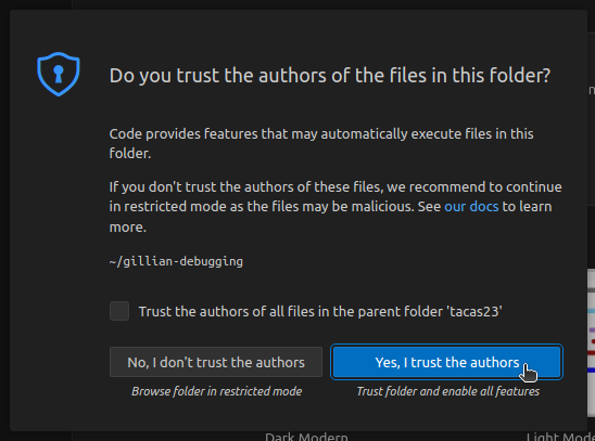 bashgit clone https://github.com/GillianPlatform/gillian-lab.git --branch SSFT25If necessary, select Yes, I trust the authors.